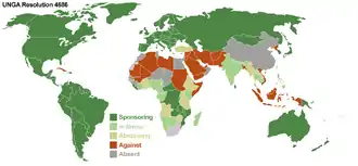 Contre : (25) Afghanistan, Algérie, Arabie saoudite, Bangladesh, Brunei, Corée du Nord, Cuba, Émirats arabes unis, Indonésie, Irak, Iran, Jordanie, Liban, Libye, Malaisie, Mali, Mauritanie, Pakistan, Qatar, Somalie, Sri Lanka, Soudan, Syrie, Viêt Nam, Yémen.