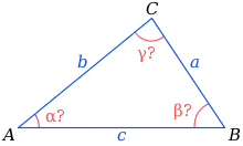 En géométrie euclidienne, la donnée de trois des éléments du triangles, dont au moins un côté[1], est nécessaire et suffisante à la résolution du triangle, l'un des cas de résolution pouvant admettre deux solutions. En géométrie sphérique ou hyperbolique, la donnée des trois angles est également suffisante. La résolution fait intervenir la trigonométrie, en particulier certaines relations classiques dans le triangle comme le théorème d'Al-Kashi, la loi des sinus, la loi des tangentes, et la somme de ses angles.