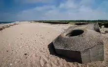 On peut voir sur le rivage quelques blockhaus, vestiges de la Seconde Guerre mondiale.