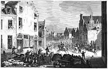 Le , peu après le départ du prince d'Orange, les volontaires belges entrent dans la ville d'Anvers. Le général Chassé, commandant des troupes gouvernementales ordonne à ses troupes de se replier dans la forteresse pour éviter les combats de rues et conclut un cessez-le-feu avec le commandement belge[85].