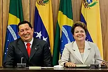 Dans le domaine diplomatique, l'influence du Venezuela de Chávez s'étendait bien au-delà des frontières du pays[1]. Il a suscité l'opposition de l'Amérique latine au soi-disant Consensus de Washington[21], qui dicte aux pays sous-développés d’ouvrir leurs marchés au libre-échange et aux investisseurs étrangers, et a établi des liens étroits avec d’autres dirigeants de gauche de l’hémisphère, notamment Evo Morales de Bolivie et Daniel Ortega du Nicaragua[21]. Le bolivarisme a également créé un organisme de coordination continental, l'Alliance bolivarienne pour les peuples de notre Amérique – Traité commercial des peuples (ALBA), conclu à La Havane entre le Venezuela et Cuba.