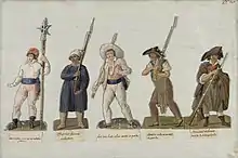 Néanmoins, plusieurs partis intérieurs souhaitent la guerre : le roi tout d'abord, qui espère secrètement une défaite de la France afin de rétablir entièrement son trône ; une partie des feuillants au pouvoir, tels que Lafayette, en quête d'une certaine gloire militaire ; une partie des jacobins, menés par Brissot et Vergniaud, qui voient dans une guerre le moyen de canaliser l'agitation populaire, de consolider la Révolution, de propager les idées révolutionnaires en Europe[106], voire d'ouvrir des débouchés économiques.