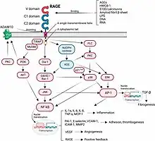 La signalisation RAGE est importante pour induire des réponses inflammatoires aberrantes et des dommages cellulaires induits par le stress oxydatif, qui sont connus pour être impliqués dans la pathogenèse de la maladie d'Alzheimer[10], de la polyarthrite rhumatoïde[29], et les maladies inflammatoires de l’intestin[30].