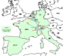 | Réseaux | SNCF | SNCF | FS | CFF | SNCB | NS | DB et ÖBB |