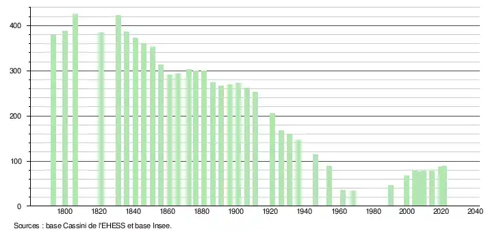 (Sources : Ldh/EHESS/Cassini jusqu'en 1999[21] puis Insee à partir de 2006[22].)
