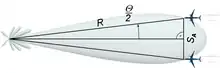 Si , l'ensemble des angles pour lesquels la puissance est au moins égale à la moitié de la puissance maximale correspond aux angles donnant un argument supérieur à dans le premier sinus cardinal; numériquement, l'ouverture angulaire de ce domaine vaut, pour de petites ouvertures :