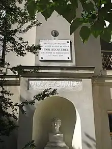 La radioactivité fut observée pour la première fois par Abel Niépce de Saint-Victor en 1857 puis redécouverte en 1896[alpha 1] par Henri Becquerel (1852-1908), lors de ses travaux sur la phosphorescence : les matières phosphorescentes émettent de la lumière dans le noir après exposition à la lumière, et Becquerel supposait que la lueur qui se produit dans les tubes cathodiques exposés aux rayons X pouvait être liée au phénomène de phosphorescence. Son expérience consistait à sceller une plaque photographique dans du papier noir et mettre ce paquet en contact avec différents matériaux phosphorescents. Tous ses résultats d'expérience furent négatifs, à l'exception de ceux faisant intervenir des sels d'uranium, lesquels impressionnaient la plaque photographique à travers la couche de papier.