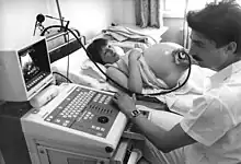 L'échographie consiste en l'utilisation des ultrasons pour étudier les organes internes sans risque d'irradiation contrairement à la radiologie. Ces ultrasons produits par un cristal piézo-électrique au niveau de la sonde, pénètrent à travers les organes « mous » et donnent lieu en retour à des échos, enregistrés par la même sonde et analysés par l'appareil pour former une image, en tenant compte des variations de vitesse sur leur parcours en fonction de la densité des tissus traversés, mais ils sont arrêtés par l'os et diffractés par l'air ce, qui limite les possibilités d'étude aux organes « pleins ». L'échographie est donc particulièrement intéressante chez la femme enceinte et chez l'enfant ou l'adulte jeune pour éviter le recours aux rayonnements ionisants. Mais le perfectionnement du traitement du signal (Doppler, couleur, perfusion, élastométrie...) en étend tous les jours, les indications, d'autant que l'appareil est léger et mobile.