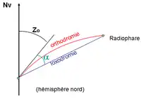 Les ondes radioélectriques se propagent à la surface de la terre selon une orthodromie. En toute rigueur, l'azimut d'arrivée de l'onde mesurée par le récepteur n'est donc pas le relèvement de l'émetteur.