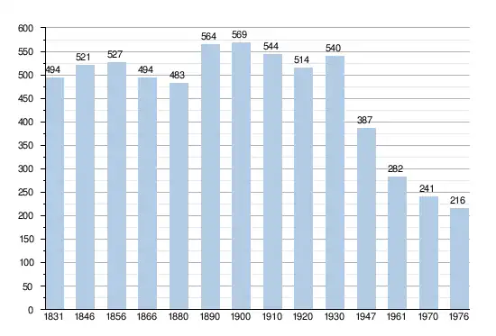 - Sources : INS, Rem. : 1831 jusqu'en 1970 = recensements, 1976 = nombre d'habitants au 31 décembre.