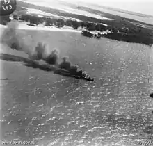 Le bombardement de Darwin le est à la fois la première et la plus grande attaque montée par le Japon contre l'Australie continentale, lorsque quatre porte-avions japonais (Akagi, Kaga, Hiryu et Soryu) ont lancé un total de 188 appareils depuis une position dans la mer de Timor[2]. Ces 188 appareils navals ont infligé de lourds dégâts à Darwin et coulé huit navires. Un raid mené par 54 bombardiers terrestres de l'armée plus tard le même jour a infligé de nouveaux dégâts à la ville et à la base RAAF de Darwin et a entraîné la destruction de 20 avions militaires. Les victimes alliées s'élèvent à 235 morts et entre 300 et 400 blessés, dont la majorité étaient des marins alliés non australiens. Seuls quatre avions japonais (tous transportés par des navires de la marine) ont été confirmés comme ayant été détruits par les défenseurs de Darwin[3].