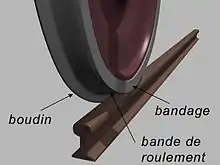 Le profil de roulement des roues est de forme conique avec un raccord concave vers le boudin. C'est la forme de la roue qui permet à l'essieu ferroviaire monobloc, par la différence des rayons de roulement droite-gauche, intérieur-extérieur, de s'auto-centrer dans la voie lorsqu'il se déporte latéralement, sans l'action d'organes extérieurs. Cet asservissement mécanique lui permet de prendre les courbes larges sans user son boudin.