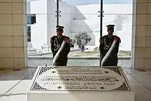 - Yasser Arafat (1929-2004), activiste et homme d'État palestinien. Il représente les Palestiniens dans les différentes négociations de paix et signe les accords d'Oslo en 1993. Il devient le premier président de la nouvelle Autorité palestinienne et reçoit le prix Nobel de la paix 1994 en compagnie de Shimon Peres et Yitzhak Rabin. Il est inhumé à la Mouqata'a, son dernier quartier général de Ramallah, le gouvernement israélien ayant refusé qu'il soit enterré à Jérusalem[9].