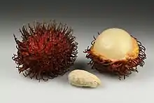 Le ramboutan, à ne pas confondre avec un litchi chevelu, est un fruit tropical d'Asie issu de l'arbre du même nom Nephelium lappaceum. Il appartient à la même famille que les litchis, les longanes et les quenettes.