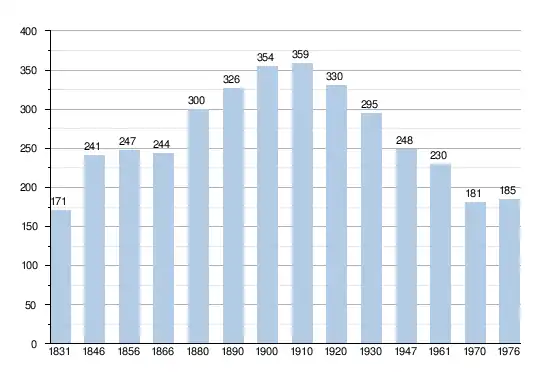 - Sources:INS, Rem:1831 jusqu'en 1970=recensements, 1976= nombre d'habitants au 31 décembre