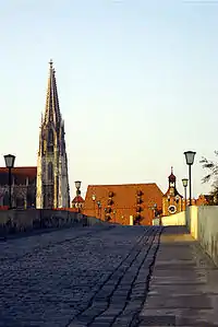 Depuis le [2], la vieille ville médiévale de Ratisbonne ainsi que le quartier de Stadtamhof sont inscrits sur la liste du patrimoine mondial de l'UNESCO. La ville est le siège d'un évêché catholique. Au Moyen Âge, par sa situation géographique, la cité possédait un rôle important dans les échanges commerciaux entre l'Italie, la Bohême, la Russie et Byzance. Elle était lieu de rencontre de nombreuses civilisations et fut très marquée par l'influence des patriciens, dont les tours d'habitation (les plus hautes au nord des Alpes) sont encore visibles aujourd'hui. Elle était aussi le siège de la diète du Saint-Empire romain germanique.