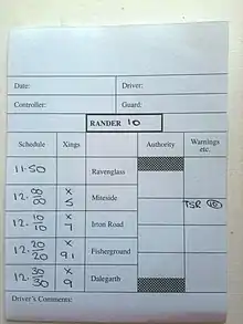 Le chemin de fer utilise le système de signalisation Radio Control Train Order. À l'extérieur de la gare de Ravenglass, la ligne est à voie unique avec des évitements à Miteside, Irton Road et Fisherground. Les trains fonctionnent par communication radio entre les conducteurs et le poste de signalisation de Ravenglass . Aux évitements et à la gare terminus, les conducteurs contactent le contrôleur, en utilisant le numéro de train présent sur la fiche "RANDER" (numéros pairs pour les trains ascendants et impairs pour les descendants), pour indiquer que le train se trouve sur l'évitement et a dégagé de la section de voie unique précédente. Pour quitter l'évitement, le conducteur contacte le contrôle pour obtenir l'autorisation d'entrer dans le prochain tronçon à voie unique. Aucun signal de type sémaphore n'est utilisé à l'extérieur de la gare de Ravenglass. Les aiguillages sur les évitements sont équipés de contre-poids bloquant une direction, ce qui signifie qu'aucune intervention humaine n'est requise et les aiguilles, talonnables, se réalignent automatiquement après le passage d'un train.