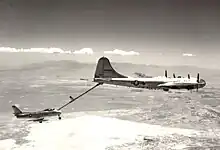 Dans le même temps, une autre méthode est expérimentée. Elle consiste à attacher deux avions de petite taille de part et d'autre d'un avion principal, avec un système d'amarrage dans les saumons d'aile. Les trois avions forment alors un seul ensemble aérodynamique, dont l'efficacité est accrue grâce à un grand allongement effectif. L'idée est que les deux chasseurs volent attachés au bombardier en régime de croisière, et, si des intercepteurs sont envoyés à la rencontre du groupe, se détachent pour les combattre. Cette méthode est expérimentée à partir de 1950 avec un B-29 et deux F-84, dans le cadre du projet Mx-1016 « Tip Tow ». En avril 1953, un accident cause la perte des trois appareils et la mort des six membres d'équipage, provoquant l'abandon du projet[12],[13]. Le concept est cependant expérimenté à nouveau dans le cadre du projet « TomTom » avec un B36 (le même exemplaire utilisé sur le projet FICON). L'idée est définitivement enterrée en 1956[14].