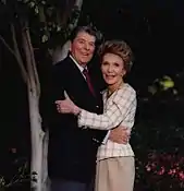 Les observateurs décrivirent la relation entre Ronald et Nancy comme proche, réelle et intime[45]. Durant sa présidence, on put constater de nombreux signes d'affection en public entre les deux ; un secrétaire de presse rapporta qu'« ils n'ont jamais pris l'autre pour acquis. Ils n'ont jamais cessé de se courtiser[43],[46] ». Il l'appelait souvent Mommy et elle le surnommait Ronnie[46]. Il lui écrivit une fois : « Quoi que je chérisse et aime… tout serait fade si je ne t'avais pas[47] ». Lorsqu'il fut hospitalisé à la suite de sa tentative d'assassinat en 1981, elle dormit avec l'une de ses chemises pour être réconfortée par son odeur[48]. Dans une lettre ouverte écrite au peuple américain en 1994, Reagan affirme : « On m'a récemment annoncé que j'étais l'un de ces millions d'Américains atteints de la maladie d'Alzheimer… Je souhaite seulement qu'il y ait un moyen d'épargner cette douloureuse expérience à Nancy[43] ». En 1998, alors que Reagan était frappé par la maladie, Nancy déclara à Vanity Fair : « Notre relation est très spéciale. Nous étions très amoureux et nous le sommes toujours. Lorsque je dis que ma vie a commencé avec Ronnie, eh bien, c'est vrai. Je ne peux pas imaginer la vie sans lui[43] ».