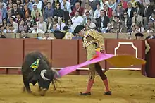 Le torero fait voler la cape dans son dos tout en tournant sur lui-même. Il imprime ainsi à l'étoffe un mouvement tournant qui la soulève en la faisant onduler. Son vol s'arrête devant le mufle du taureau qui s'immobilise tandis que l'homme s'éloigne[1],[2].