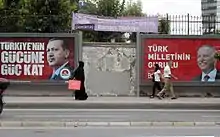 En 2001, Erdoğan cofonde le Parti de la justice et du développement (AKP), parti conservateur à l'image de l'Union chrétienne-démocrate d'Allemagne[17]. Le noyau dur de l'AKP est constitué par l'aile modérée du Parti de la vertu, interdit la même année. Erdoğan en prend alors la présidence.