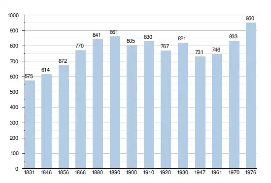 - Source: DGS, 1831 à 1970=recensements population, 1976= habitants au 31 décembre