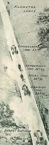 - En décembre 1906, le futur Sir Algernon Lee Guiness, vainqueur du kilomètre de Dourdan sur Darracq 200 hp huit-cylindres[9], établi un officieux record du monde de vitesse du kilomètre départ lancé à 180 km/h[10] (en gagnant dans la foulée la course de côte de Gaillon en fin de mois) ;