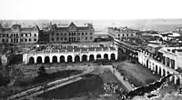 Sous la direction du maître d’ouvrage Juan Bautista Segismundo, constructeur également du couvent Saint-Laurent, et d’après les plans de don Agustín Conde, furent alors édifiées deux ailes oblongues, à toit plat, disposées dans l’axe l’une de l’autre, constituées d'une double rangée de onze compartiments quadrangulaires, et présentant de chaque côté vers le dehors une suite de onze arcs plein-cintre. Comme nouveauté pour l’époque à Buenos Aires, la totalité des murs fut construite en briques.