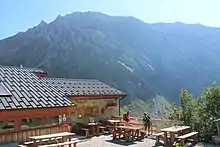 Le refuge avec le mont Rosset en arrière-plan. | |||