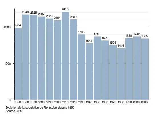 Le graphique suivant résume l'évolution de la population de Rehetobel entre 1850 et 2008[3] :