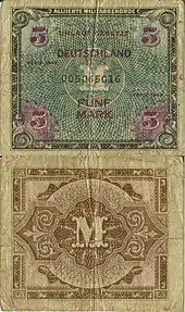 Plusieurs devises militaires alliées ont été mises en place sur différents territoires libérés ou occupés par les Alliés, dont un reichsmark pour l’Allemagne, cf. Allied Military Currency (en) et AM-Mark (en)[2].