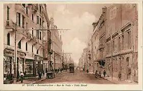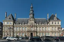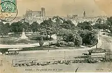 ![]() ![]() ![]() ![]() ![]() ![]() De haut en bas, de gauche à droite : la fontaine Subé au centre de la place Drouet-d'Erlon ; une arche de la porte de Mars ; la cathédrale Notre-Dame de Reims ; l'hôtel de ville de Reims ; la villa Demoiselle et la place Royale. |