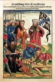 Jérôme de Prague, après avoir abjuré la doctrine de Wyclif et de Hus en , déclara qu'il avait menti et se repentit le devant ses juges. Il fut brûlé vif comme relaps le .