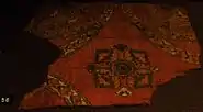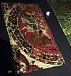 La tapisserie de Sampul, découverte dans le Xian de Lop, préfecture de Hotan, Xinjiang, Chine, représente un soldat grec du royaume gréco-bactrien (250-125 av. J.-C.), aux yeux bleus, brandissant une lance et portant ce qui semble être un diadème en forme de bandeau. Au-dessus de lui est représenté un centaure, une créature de la mythologie grecque qui est un motif courant dans l'art hellénistique[48] . Cette tapisserie est exposée au musée de la région du Xinjiang.