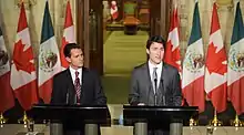 Le , le Canada a levé l'obligation de visa pour les citoyens mexicains[4]. Le , le président Enrique Peña Nieto, le premier ministre Justin Trudeau et le président américain Donald Trump ont signé l'Accord Canada–États-Unis–Mexique lors du sommet du Groupe des vingt à Buenos Aires, Argentine. Cet accord, s'il est ratifié par les trois pays, devrait remplacer l'ALENA. En , la gouverneure générale Julie Payette a assisté à l'investiture du président Andrés Manuel López Obrador[5].