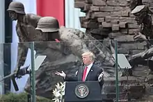 En 2017 juillet, le président américain Donald Trump visite la Pologne dès son deuxième voyage à l'étranger. Il rencontre le président de la Pologne Andrzej Duda. Ils tiennent ensuite une conférence de presse conjointe dans le Château royal de Varsovie. Le président Trump remercie le peuple polonais et le président Duda pour l'accueil chaleureux qu'il reçoit à Varsovie[16]. Il dit : « Notre alliance avec la Pologne et l'OTAN demeure essentielle pour prévenir les conflits et s'assurer que la guerre entre les grandes puissances ne ravage plus jamais l'Europe, et que le monde sera plus sûr et meilleur. L'Amérique est engagée à maintenir la paix et la sécurité en Europe centrale et en Europe de l'Est »[réf. nécessaire]. Le président Trump s'est également entretenu avec les dirigeants européens qui étaient présents à l'Initiative des trois mers lors du sommet de Varsovie.