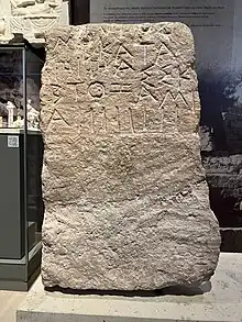 Les sources épigraphiques comprennent avant tout des inscriptions sur pierre, aussi sur métal et autres supports. Elles « livrent des calendriers religieux, des descriptions de rituels et de fêtes, des comptes de gestion de sanctuaire, des règlements d’associations religieuses, des dédicaces et des remerciements aux divinités, des comptes rendus d’oracles, des imprécations, des textes mystiques ... »[53]. Il s'agit donc de sources très diverses concernant tous les aspects de la vie religieuse. Les « lois sacrées » sont un type de source épigraphique important pour approcher l'activité et la mentalité religieuses antiques. Leur contenu peut être très divers : la conduite des rituels et fêtes, leur financement, les règles de pureté à respecter avant d'entrer dans des sanctuaires, la gestion de ceux-ci, notamment les conditions de désignation et le rôle des prêtres et prêtresses, les peines infligées en cas de vol d'un bien sacré, etc.[54] À la différence des textes littéraires, ce corpus s'enrichit constamment[55].