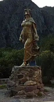 Lorsque les Incas imposent le culte du Soleil, ils « destituent » les dieux locaux mais n'interdisent pas l'exercice des croyances animistes qui dans l'ensemble conforte et renforce le culte du Soleil qui se pose en clé de voûte du système. Parmi les croyances tolérées figure le culte aux Huacas. Dans la langue Quechua, le terme Wak'a, qu'Alfred Métraux considérait comme l'équivalent approximatif du concept de fétiche[2], peut désigner tout objet ou lieu qui sort de l'ordinaire et considéré comme sacré ; par extension, cela désigne tout ce qui est susceptible de faire l'objet d'un culte dans le contexte animiste. Les huacas peuvent être soit des personnages, soit un élément naturel particulier, un lieu de l'espace géographique (comme une montagne, un lac, une rivière, une source, une caverne, une roche singulière, ou même un arbre, et jusqu'aux astres comme le soleil et la lune), soit encore un artéfact ou édifice comme un site sacré, un sanctuaire, un temple, un tombeau[3] ; les momies des ancêtres font partie des huacas les plus importantes d'un ayllu particulier, et a fortiori les momies des empereurs (Sapa Inca) passés, qui faisaient l'objet d'un culte par leur panaka (ou lignage d'un Inca), et étaient jalousement conservées par celle-ci dans l'ancien palais de l'empereur décédé[4]. Elles pouvaient être exposées hors de leur sanctuaire lors de cérémonies annuelles, tout comme les statues des empereurs défunts[N 1] l'étaient hors du Temple du Soleil (Coricancha) lors des mêmes cérémonies, sur la grand'place du Cuzco, l'Huacaypata[5].