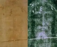 L'image d'Édesse est également connue sous le nom de Mandylion. Deux images pourraient être le Mandylion. La première est la Sainte Face de Gênes, conservée à l'église de Saint-Barthélemy des Arméniens à Gênes, l'autre est la Sainte Face de San Silvestro, conservée dans la basilique San Silvestro in Capite à Rome jusqu'en 1870, et maintenant dans la chapelle Mathilde du palais du Vatican. Selon le journaliste Ian Wilson, ce qui a été vénéré sous le nom de Mandylion du VIe siècle au XIIIe siècle était en fait le Suaire de Turin, plié en huit, et conservé dans un châssis oblong de telle façon que seule la Sainte Face était visible.