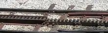 Rapidement, le système sera repris par l'ingénieur suisse Emil Strub qui simplifie le rail en proposant une lame pleine crénelée en forme de coins[67]. Il est ensuite perfectionné par l'ingénieur suisse Carl Roman Abt qui met au point un rail de deux lames parallèles. Les dents de chaque lame sont décalées d'un demi pas (60 mm). Cette disposition assure une meilleure continuité dans l'effort de traction[68],[65].