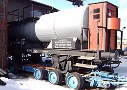 Un système analogue est utilisé pour le transport de wagons de chemins de fer sur des voies à écartement différent (de la voie normale vers la voie métrique).