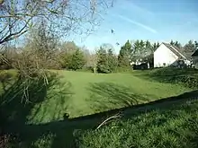 Sensiblement orienté nord-sud, Le rempart, à son plus grand développement, est rectiligne, long de 800 m et barre presque totalement le plateau[7] du nord au sud. Il est précédé à l'est d'un fossé à fond plat large de 40 m[8] qui, vers le nord du dispositif, assure la continuité du vallon sec naturel de Malvau[9]. La fossé en lui-même n'ayant fait l'objet d'aucune étude archéologique, sa largeur reste une estimation visuelle[10].