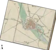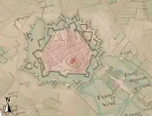 Plan en 1654 à la prise de la ville par les français (centré sur la ville)
