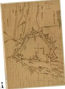 8. Duvivier place sa construction ou 1676 selon les plans de Vauban, une autre source parle de 1668 selon les plans du projet de La Touche de 1659. Cette seconde hypothèse semble la plus probable, la conception de l'ouvrage ne ressemble à rien de connu chez Vauban.