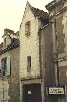 Maison natale de Descartes à Descartes (Indre-et-Loire), bâtisse éclairée de deux fenêtres gothiques en accolade datant en partie du XVIe siècle, transformée en musée en 1974.