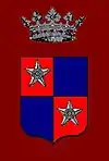 Ecartelé : aux I et IV, de gueules à une molette d'éperon d'argent à 5 rais ; aux II et III, d'azur plein.