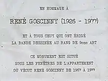 - Emmanuel Soulier, « Janvier 2021 : Une fresque en hommage à René Goscinny », sur Institut René Goscinny, (consulté le )