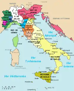 Dans un contexte de prépondérance de l'Italie dans la plupart des domaines, le XVIe siècle est marqué par une vague très importante d'emprunts de la langue française à l'italien[51]. Des 2 000 italianismes que comportait alors la langue française à cette époque[52], le français moderne n'en a toutefois retenu qu'environ 700[53]. Plusieurs défenseurs de la langue française se sont émus contre ces excès de mode, notamment Henri Estienne, auteur de Deux dialogues du nouveau langage italianizé et autrement desguizé (1578), Barthélemy Aneau, Étienne Tabourot, et Béroalde de Verville, auteur de Moyen de parvenir (1616)[54]. Henri Estienne en rendait responsables les guerres d'Italie et la cour, avec son « jargon » spécial[55].