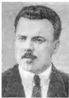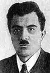![]()  | Ivan Mykytenko | - | En 1937, il est démis du secrétariat, du conseil d'administration et du présidium du SRPU, de rédacteur en chef du magazine de littérature soviétique et expulsé du parti le . Le lendemain, il rejoint le NKVD. Les données sur la suite sont très contradictoires ; il se serait possiblement suicidé. Son corps aurait été retrouvé le . | Écrivain, dramaturge. Un des dirigeants du VUSPP, et en 1932 membre du comité d'organisation de l'Union des écrivains de l'URSS. | |