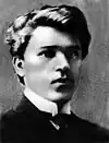 ![]()  | Mykhaïlo Draï-Khmara (uk) | - | Il est arrêté le , accusé d'appartenir à une organisation contre-révolutionnaire de l'université de Kamianets. Faute de preuves, il est libéré le et l'affaire est close le . Remis en liberté sous caution, il est arrêté un deuxième fois le et conduit à l'exil pendant 5 ans dans le Kolyma, où il est tué. | Poète néoclassique, critique littéraire, traducteur. Il aurait été capable de parler 19 langues. | |